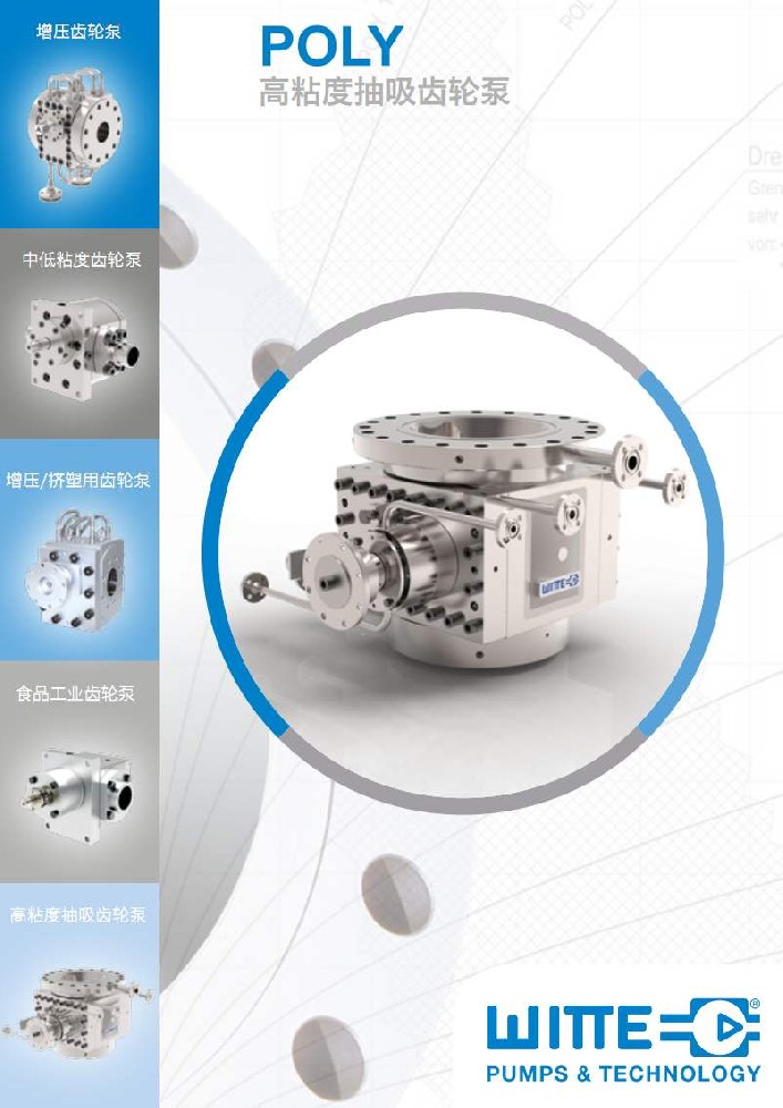 德国威特齿轮泵 WITTE PUMPS & TECHNOLOGY GmbH具有 CHEM /EXTRU/POLY/CHEM-MAGNET 等系列高精密产品,采用模块化针对性设计,根据泵的操作条件, CHEM /EXTRU/POLY 泵的零件具有可互换性。威特泵用户可根据实际需要,采取液相加热或电加热方式,密封可选择机械密封 , 填料密封, , 螺旋迷宫密封 ( 动密封 ) ,真空螺旋密封及特殊组合的密封配置。威特泵具有直齿、斜齿,以及威特**设计的高精度、低脉动、低温升、低剪切的人字形齿,针对不同的输送介质,在泵的材质选择上,威特可提供钛合金、铬镍合金、哈氏合金、钽合金,陶瓷,金属陶瓷的组合材质等。德国威特泵业技术有限乐鱼平台代表高黏度流体和熔体齿轮泵****技术。WITTE泵设计——“高精度人字型齿”,斜齿轮大幅度降低了平行外啮合齿轮在高压下的脉动。而对于挤压、聚合、合成、化工等工艺中,要求泵的出口压力波动非常小时,如在高质量的管材、**次的薄膜、片材挤塑机上,使用“高精度人字型齿”能够更**的**压力和流量的波动。与塑料及聚合物工艺的传统设计相比,在同等排量下,“高精度人字型齿”允许使用加粗的轴颈。此结构可以降低进出压力对轴承的负载,同时压差范围更大,可以达到350Bar,泵进出口两端在高压下工作时,轴承温升很低。人字型齿轮的另一特点是对介质的剪切力较小。
